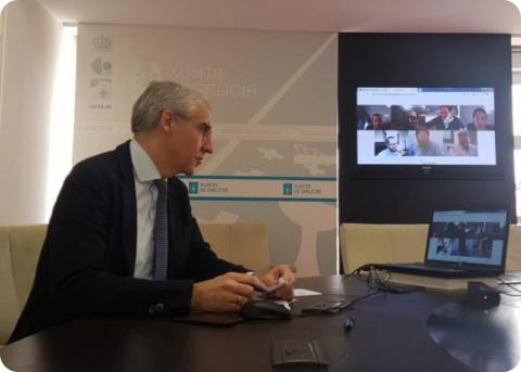 El conselleiro de Economía, Empleo e Industria, Francisco Conde, mantuvo hoy un encuentro por videoconferencia con entidades del sector financiero para avanzar en la puesta en marcha de las medidas de apoyo a empresas y autónomos aprobadas por la Xunta.